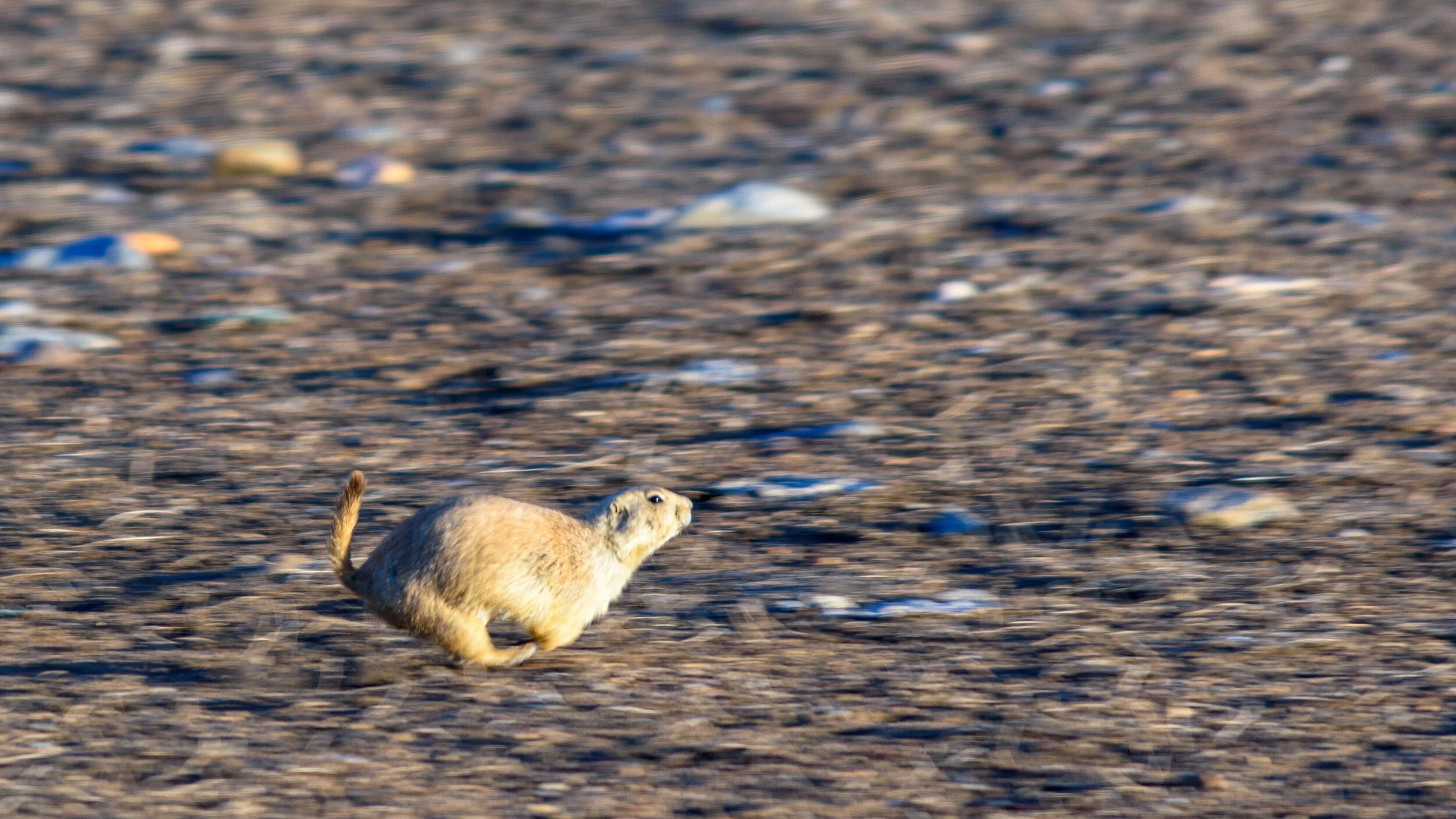 A prairie dog took one look at our intrepid explorers and scampered at breakneck speed away from its burrow, for some unknown reason, and with nary a peep.