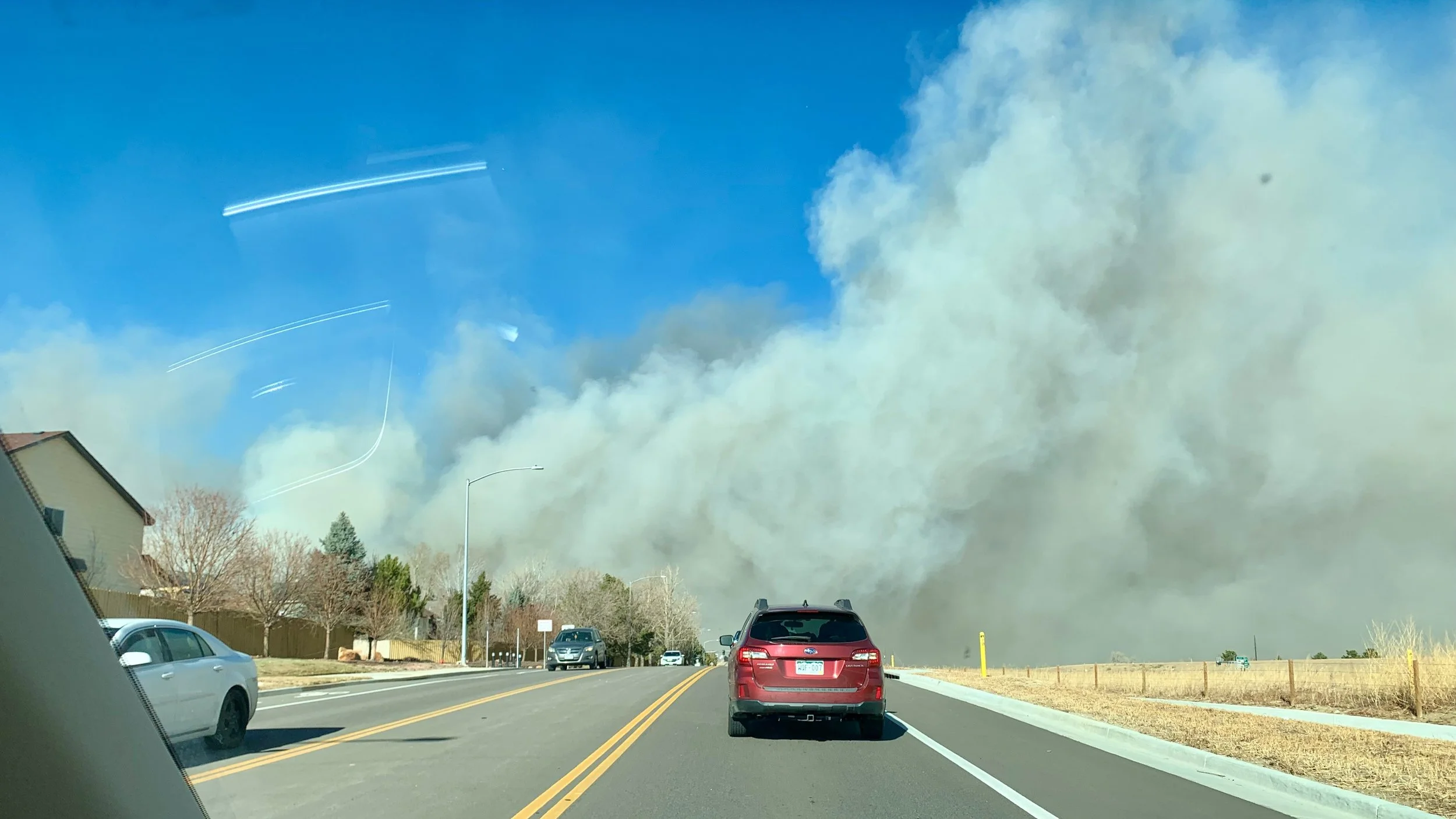 People were driving frantically, panic in their eyes. On Coalton Road, near the Flatiron Crossing Mall, fire trucks and ambulances dodged through traffic. A line of 20 police cars from Denver, Arvada, Louisville, and Lafayette sped westward toward Superior.