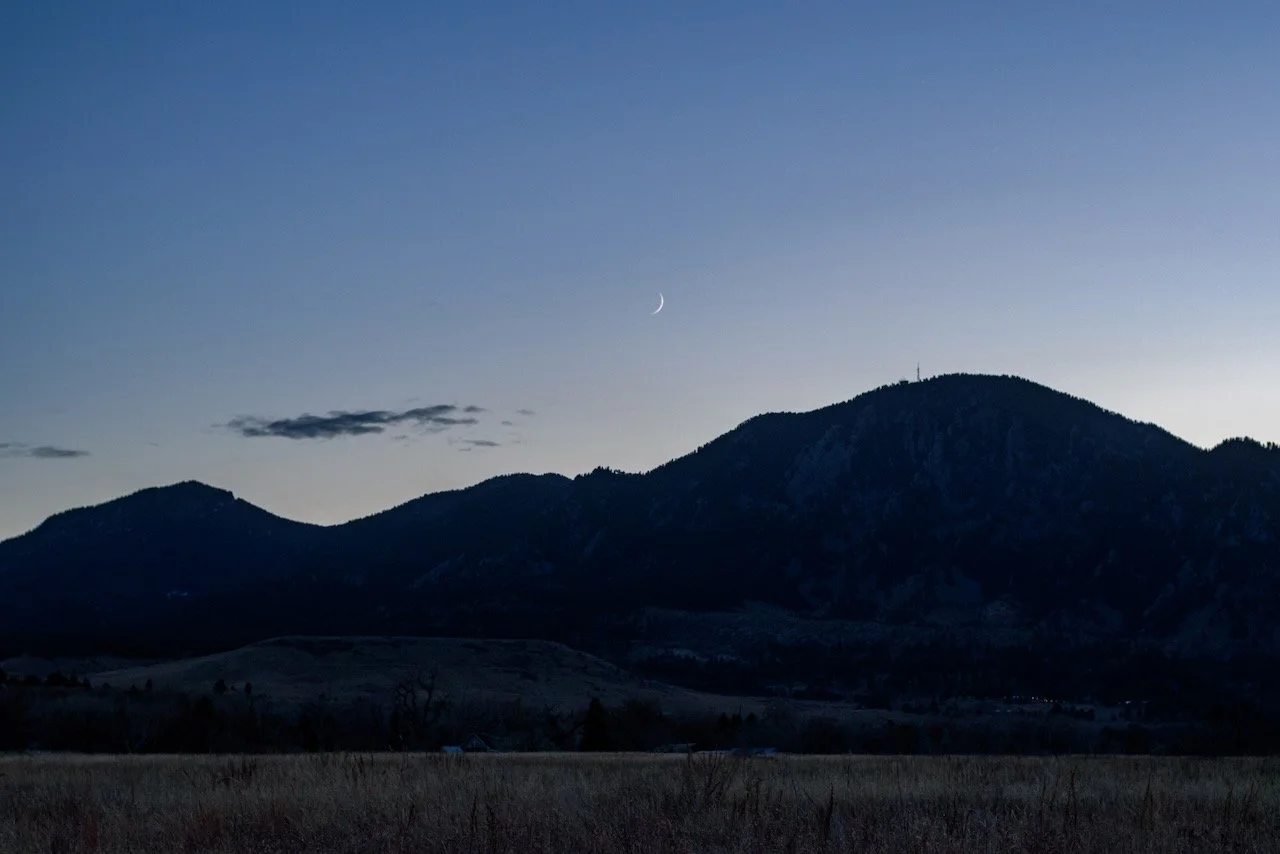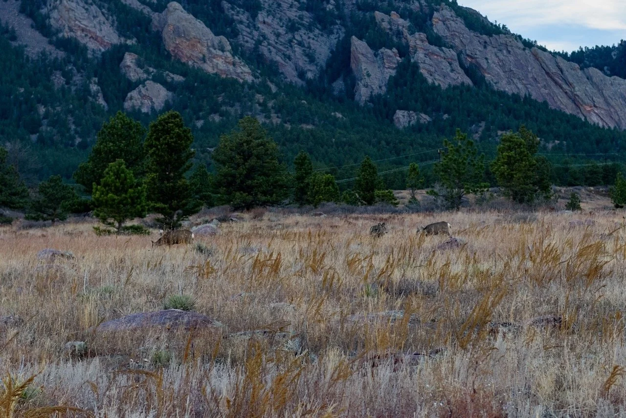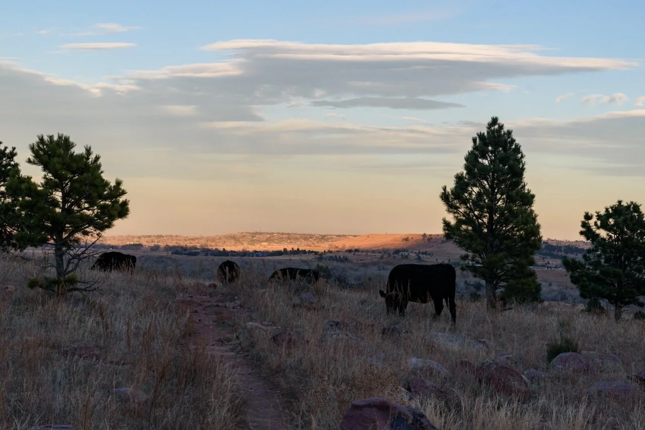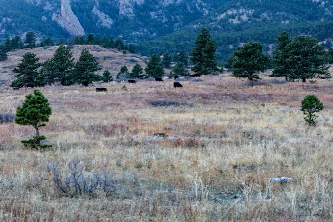 Along the way, plenty of dry grass and rocks. Some cows. More rocks. Some picturesque cirrus clouds hovering above the Flatirons. Not many birds.