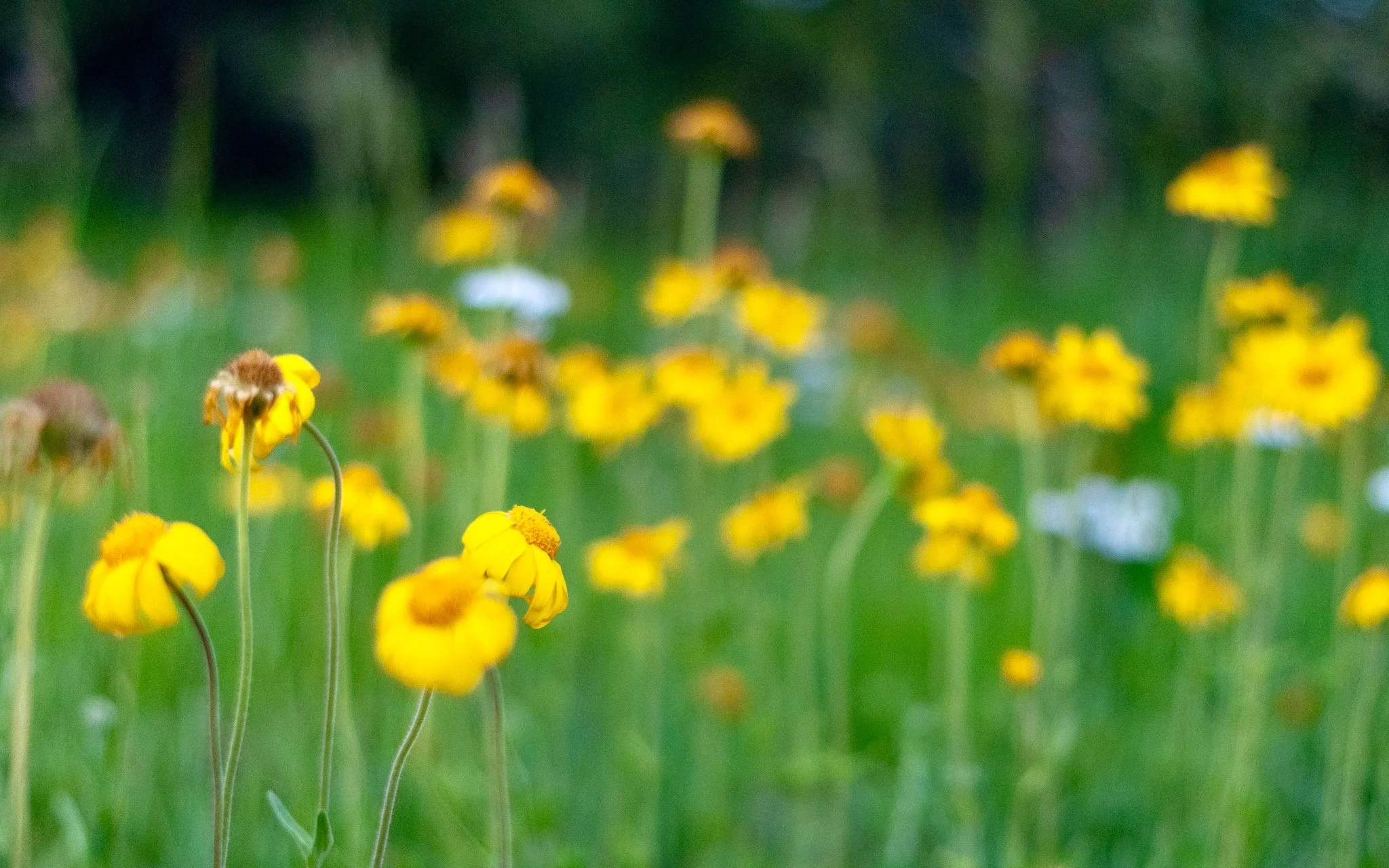 S and D circumnavigated the Flatirons Vista trail this evening, with rain nearby to the east and to the south. Along the way, various white, purple, and yellow flowers, in quite a dazzling display amid the vibrant green grass. Also en route, a few hikers, a bike or two, a dog who galloped down the trail and leaped joyfully into a ditch. Some mosquitoes. A good, wide, gravelly trail.
