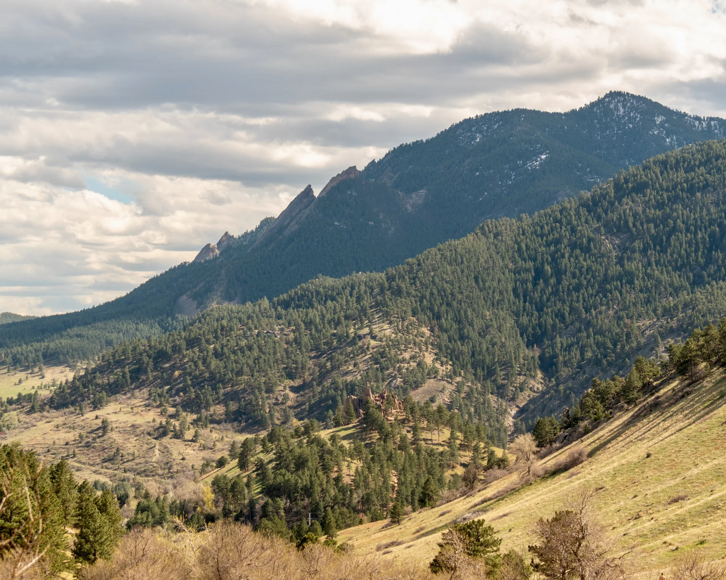 17 Apr 2024 Sanitas Valley S and D headed out to Mt. Sanitas on a calm, pleasant spring afternoon for a wander up the Valley trail. A goodly breeze kept the sun at bay. Plenty of dogs, along with their hikers. Numerous magpies in the field, and not much else. Some dry grass.