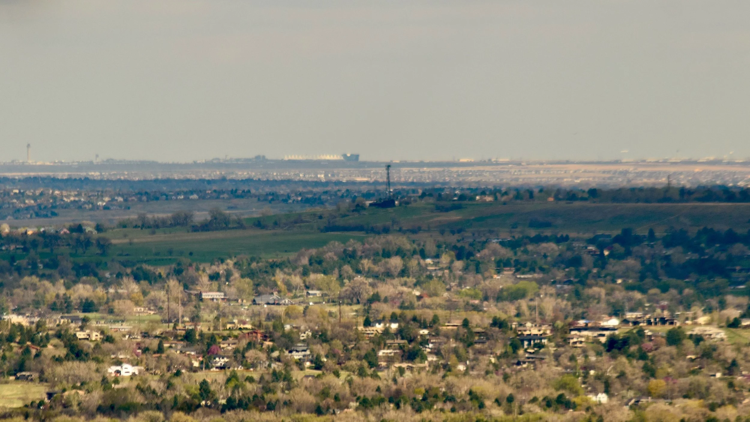 Our fearless adventurers took a moment at the top to search for the airport, hidden in the atmospheric haze. It’s out there somewhere.