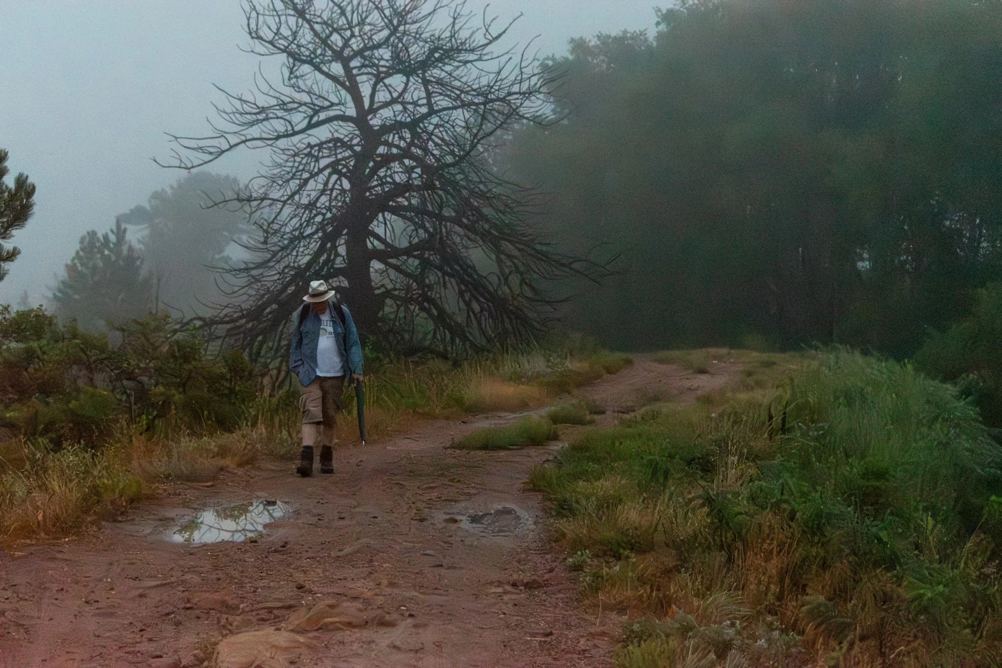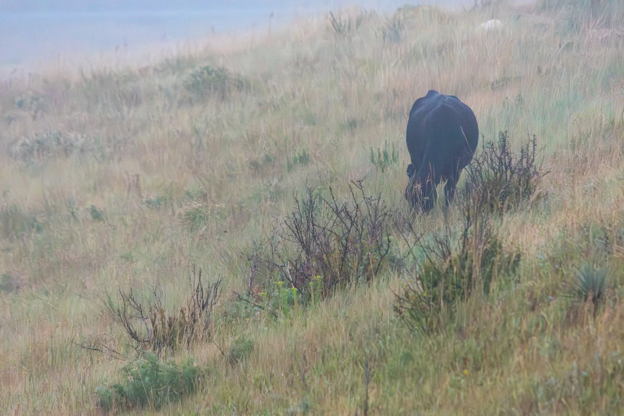 8 August 2024 Greenbelt Plateau Under a foggy gray sky and light rain, S and D met at the Greenbelt Plateau trail. No one in the parking lot. No one on the trail. Just a cow. And some mud. And those little birds that run up the trail in front of you and then fly back into the field.