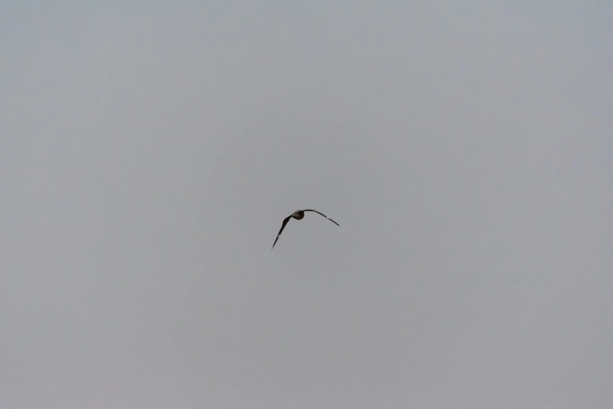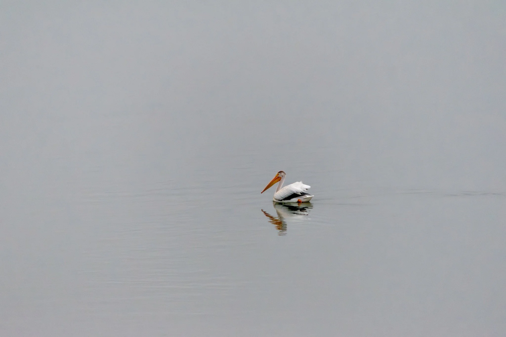At the end of the trail, a pelican. Two, actually, far off in Marshall Lake. As dusk fell, a nighthawk whirled past, its calls piercing the fog like a lonely, lost ghost.